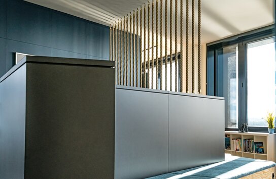 - Außenliegender Sonnenschutz.
