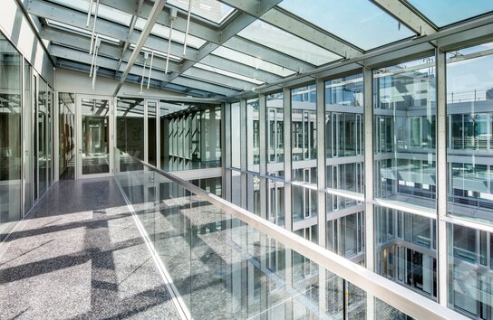- Belichtung der innenliegenden Büroflächen über Glasatrium